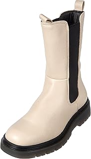 - Estilos de botas Chelsea más altas en cuero natural falso junto con elástico en los lados y un ciclo en la parte trasera.