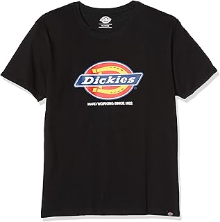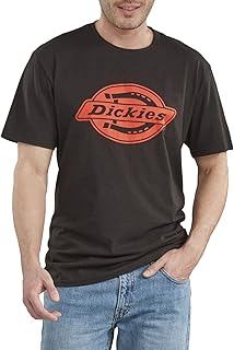 - Esta camiseta de skate para hombre con cuello redondo presenta el icónico logotipo de Dickies impreso en el pecho.