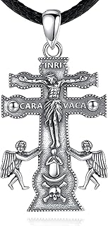 Caravaca Cruz para Mujer Hombre Plata de Ley 925, Egipto Ankh Cruz Amuleto Colgantes Buen Pastor Cruz Vintage Joyería para Creyente Cristiano, Regalo para Mujer Hombre, 61CM