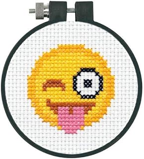 Dimensions Learn-A-Craft Tongue Out Emoji Mini Counted Cross Stitch Kit-3" 11 Count