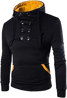 Sudadera de entrenamiento para hombre, con capucha, contraste de colores, con dos filas de botones y media tira de botones para otoño, corte estrecho, manga larga