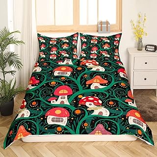 Fundas Nordicas Cama 180 Hongo Planta Juego de Cama Imágenes de Dibujos Animados de Microfibra Suave Impresión 3D Funda Edredon 260x240 cm + 2 Fundas de Almohada con Cremallera