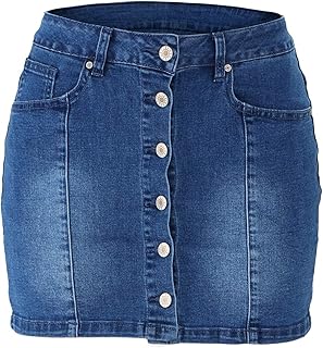 Jeansrock - Falda vaquera para mujer con botones, estilo informal y comcomutor, cintura elástica, línea A, con bolsillos, falda vaquera