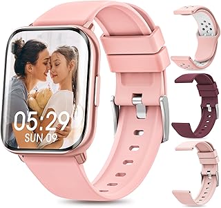 Smartwatch Mujer 1.7'' Pantalla Táctil, 4 Correas Reloj Inteligente, Regalo Mujer Navidad, Pulsómetro SpO2, 24 Modos Deportivos, Mensajes WhatsApp, Función Femenina Podómetro Calorías Android iOS Rosa
