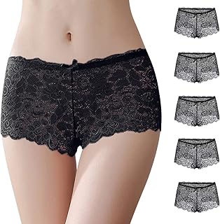 Pack de 5 calzoncillos tipo bóxer de encaje para mujer, cómodos, sin costuras, hipster, calzoncillos de algodón, cómodos, ropa interior, ropa interior, calzoncillos invisibles