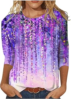 Camiseta para mujer de manga 3/4 informal, de poliéster, estampado de tallas grandes, para mujer, suave, acogedora, otoño, cuello redondo, color morado oscuro, 01-morado oscuro, L