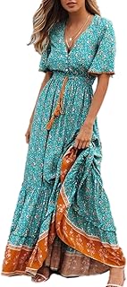 Vestido Mujer Bohemio Largo Verano Playa Fiesta Floral/Polka Dot Maxi Vestidos Cóctel Falda Larga con Cinturón